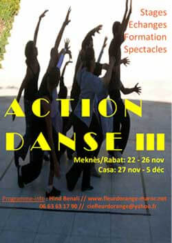 بعد النجاح المدوي الذي حققته الدورة الثانية لمهرجان الرقص المغربي( اكسيون دانس ) في العام 2008 بمدينة الدار البيضاء، قرر منظموه مد أنشطته لتشمل مدن مكناس و الرباط إضافة إلى الدار البيضاء. فالمهرجان الذي تقوم على تنظيمه فرقة "فلور دورنج" أو زهر البرتقال ضم في السابق مجموعة كبيرة من راقصي المغرب و أفريقيا و أوروبا،