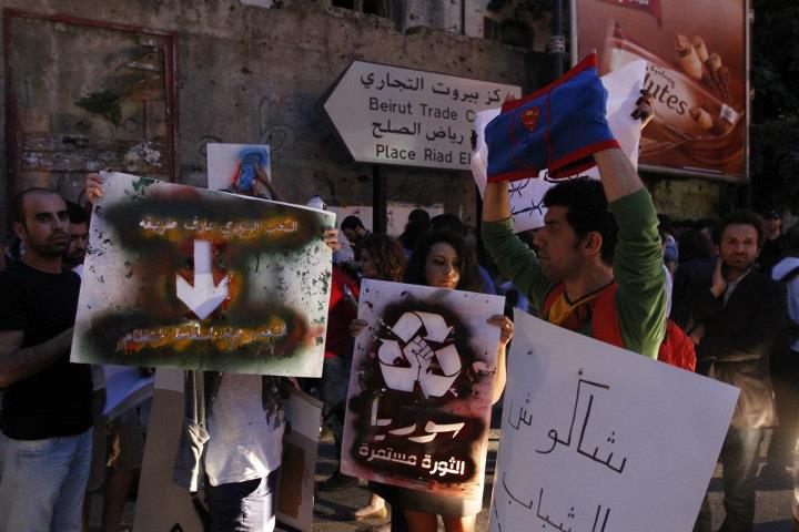 الأول من أيار، إضافة إلى إعلانه كيوم لحرية التعبير، هو عيد العمال، المناسبة التي جعلت مجموعة من الناشطين تتسلل بعيدا عن الأنظار متوجهة إلى مقر الاتحاد العمالي العام طلبا لعيد مسلوب "نقابات عماليّة وليست عميلة"، "غسان غصن ارحل".