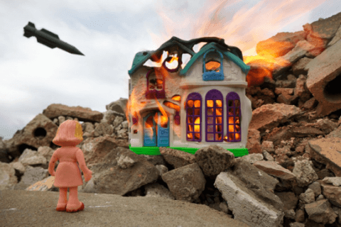 على الرغم من أنّه من الصّعب وضع الحرب واللّعب في خانة واحدة، إلا أنّ متاجر الألعاب ممتلئة بالبنادق البلاستيكيّة ومجسمات الجنود الصغيرة. في هذا المشروع المستمر تحت عنوان "ألعاب الحرب" (War-Toys)، يستخدم المصوّر براين مكارثي الألعاب لسرد قصص وإعادة تركيب ذكريات من واقع عاشه أطفال في مناطق النزاع. ذهب مكارثي لزيارة الأطفال في إسرائيل وفلسطين ومؤخًّرأ في لبنان حيث عمل بالتعاون مع المعالجة النفسيّة ميرا سعد، وقد تمكّنّا من طرح بضعة أسئلة عليهما.