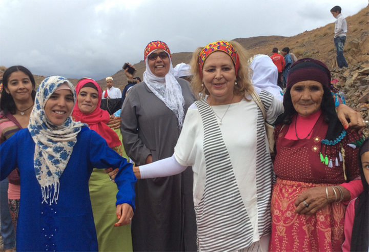 Le village d’Aït Kalla est au bout de la route. Avant, c’était la piste ; depuis quelques mois, il ne faut plus « que » trois heures pour rejoindre Ouarzazate, en parcourant les hauts plateaux de l’Atlas et en serpentant d’un col à l’autre. Au dernier virage, on aperçoit des grappes humaines et colorées, on entend résonner les chants, les tablas, les tambourins. Nous sommes une demie-douzaine à avoir fait le déplacement pour l’occasion. Najat Ikhich, présidente de l’association Ytto, basée à Casablanca, rayonne de joie à la vue de la foule souriante qui se presse et de ses jeunes amies qui nous entourent.