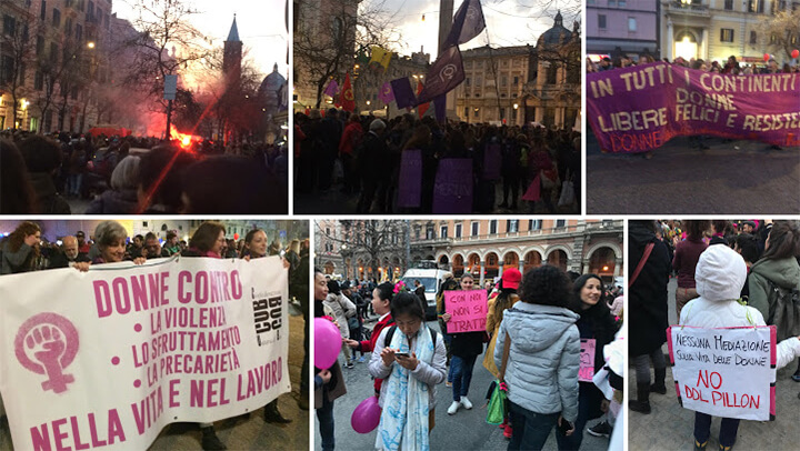 Dans les faits, l’appel à la grève transféministe globale entendait rompre avec le ronronnement des commémorations et remettre en cause la récupération commerciale du 8 mars. Entraînant dans son sillage une kyrielle d’associations féministes, écologistes, de migrant.e.s, d’étudiant.e.s, de travailleuses et travailleurs précarisé.e.s, Non una di meno avait demandé aux femmes d’interrompre toute forme d’activité formelle ou informelle, gratuite ou rétribuée, et décrété « une grève de la consommation, du travail productif et reproductif, une grève de la surexploitation de la terre, des territoires, des corps humains et animaux, une grève pour inventer une temporalité nouvelle… »