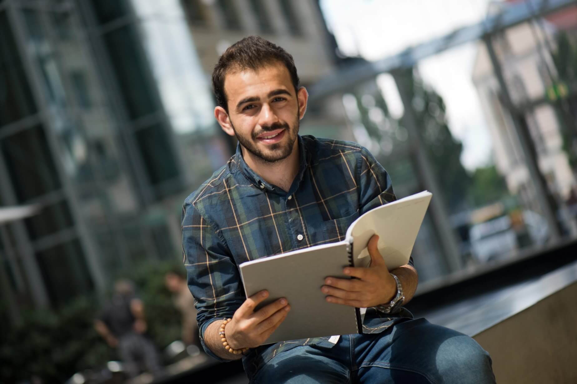Ayham a pu atteindre le niveau linguistique permettant l’accès à l’université en rejoignant une session de langue allemande organisée par l’université Humboldt de Berlin dans le cadre des programmes Welcome et Integra à destination des réfugiés. Ces sessions linguistiques dispensées gratuitement par la plupart des universités allemandes depuis 2015 permettent d’atteindre le niveau pour se présenter au DSH ou l’équivalent. Ayham souligne l’importance des sessions linguistiques offertes par les universités ; le niveau y est élevé et la qualité de l’enseignement bien meilleure pour ceux qui veulent poursuivre leur études au-delà des sessions d’intégration ouvertes à l’ensemble des réfugiés.