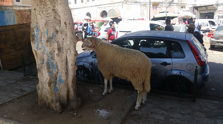 Les ruelles de la médina sont un aperçu de la vie : un homme garde son animal dans le jardin, le regarde avec admiration, le protège, des enfants jouent dans la cour. Le sacrifice aura lieu dans les maisons et, en effet, en passant par les rues, des portes fermées vient le bruit des bêlements.