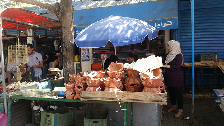 Les jours précédant l'Aïd, le marché est déjà bondé tôt le matin. Ceux qui sont là, ne sont pas en train de faire les courses pour un repas normal, mais pour un régiment. Des sacs d'oignons, des tomates, du persil pour faire un plat typique qui sera fait avec les intestins du mouton.