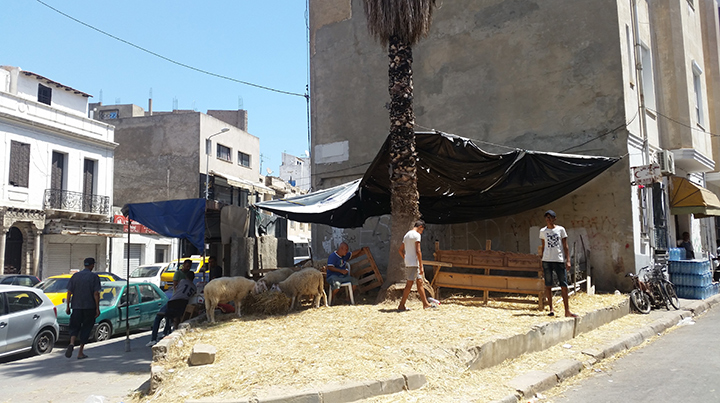 Aux alentours, certains animaux sont encore à vendre, ce sont les dernières heures. Ce sont des moutons adultes, ils doivent avoir au moins 6 ou 7 mois, ils m’ont dit, pas d'agneaux, trop petits pour être autorisés. Il y a ceux qui se plaignent des prix qui, après la révolution, ont explosé ; un spécimen adulte peut coûter jusqu'à 1000 dinars (environ 300 euros), mais si une famille ne peut se le permettre, l'achat n'est pas obligatoire.