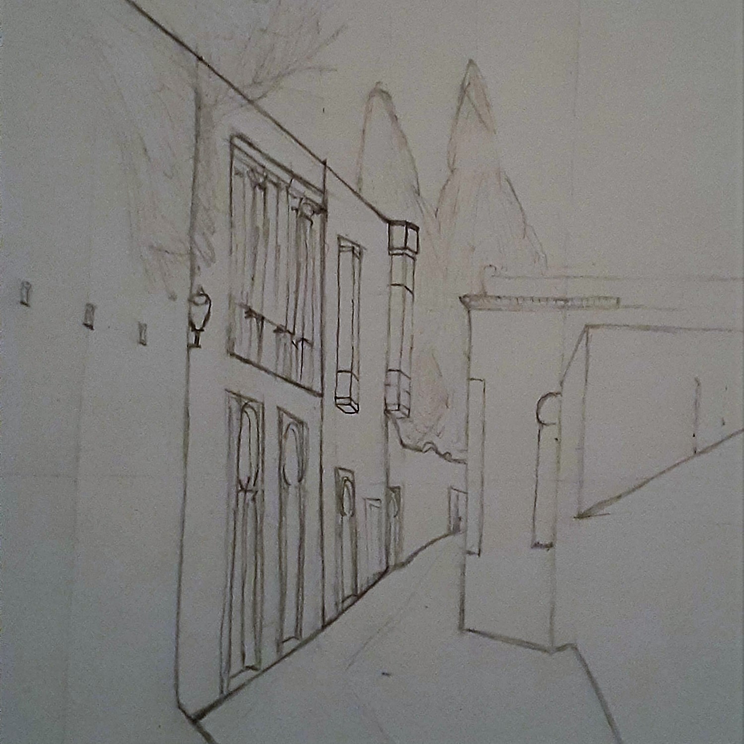 Ainsi la ville de Sidi Bou Saïd est un lieu fascinant et qui permet de se plonger dans les détails de son architecture. C’est pour celà que je m’y exerce sans hésiter et que j’y choisi des modèles, pleins de détails. Les ruelles et bâtisses permettent de s’exercer à la perspective, matière enseignée en première année d’architecture.