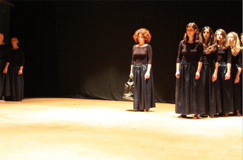 Laura est française, elle a 24 ans, et elle a, elle aussi, découvert le théâtre à travers l’expérience qu’elle a faite avec Astràgali en 2008. « La recherche sur le corps et sur la voix est essentielle pour moi parce qu’au-delà des différences culturelles, ce n’est plus le cerveau qui parle mais le corps, et cela change tout », raconte-t-elle. « D’autre part, toute l’iconographie sur le mythe que nous avons passe d’abord et avant tout par l’image et donc par le corps. Et même si les gens ne connaissent rien à l’histoire, en travaillant avec le corps nous réussissons à exprimer des émotions de manière très intense, très profonde, et à les faire partager. » Laura a joué le mythe de Niobé, la femme du roi de Thèbes, mère de douze fils qui offense Léto et pour cette raison est punie : elle voit sa progéniture exterminée par Diane et Apollon. De douleur, Niobé se transforme en roche et est transportée en Phrygie. « J’ai choisi ce mythe parce que je trouve qu’il est très important de guérir les blessures à travers la création théâtrale. Pour mon rôle, je n’ai cependant pas choisir de représenter Niobé, mais Diane, celle qui tue ses enfants, et cela m’a permis de ne pas mettre en scène ma propre douleur, mais de représenter celle qui l’a provoquée et ainsi de la relativiser en faisant sortir ces émotions négatives pour les vivre, à travers le mythe, à un niveau plus universel. »