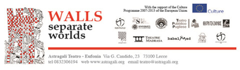 Walls-Separate Wolrds è un progetto internazionale promosso da Eufonia-Astràgali Teatro (Italia-Lecce), con il supporto del “Programma Cultura 2007-2013” dell’Unione Europea. Il progetto è in partnership con: Università del Salento-Dipartimento di Storia, Società e Studi sull’Uomo, Babelmed, Centro Italiano dell’International Theatre Institute (ITI), Teatro Pubblico Pugliese (Italia), Theatro Tsi Zakynthos (Grecia), Centro Cipriota dell’ITI (Cipro), Performance Research Association (Turchia), Un Vrai Beau Gars e l’International Theatre Institute Direzione Generale (UNESCO_Francia).