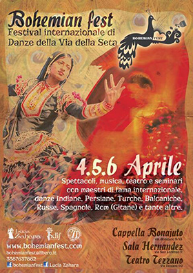 Il sentiero Rom ci conduce in terre esotiche, arricchendoci con le loro culture, tradizioni e forme artistiche. Il Bohemian Fest intende celebrare proprio questo viaggio che i nomadi facevano dall’India (dal Rajasthan) alla Spagna (Andalusia), percorrendo la via della seta e delle spezie ed incontrando e contaminandosi con i popoli persiani, turchi, balcanici, arabi, andalusi. Sarà un tripudio di danze, movenze, canti, e musiche, espressioni artistiche tradizionali e moderne appartenenti a diverse popolazioni, etnie, lingue e religioni che hanno in comune la passione per la danza e l’amore per la musica. Attraverso il linguaggio della danza i gitani, con il loro spirito libero, celebrano la vita, trasmettendo un’antica forma di comunicazione, di saggezza antica e di tradizioni spirituali. Un viaggio danzante lungo il sentiero Rom dal Rajasthan all’Andalusia da condividere con tutti coloro che hanno una mentalità aperta, che si mettono sempre in discussione, che sono curiosi, che non hanno certezze e convinzioni fisse ma sono, al contrario, convinti che bisogna sempre mettersi sempre in gioco. Bohemian Fest è anche questo. Ed è soprattutto un modo per far conoscere ed apprezzare la cultura rom, tribale e gitana che, essendo nomade, non può che esprimersi attraverso la musica e la danza, possente veicolo di comunicazione, ancora più arcaico della lingua parlata ed estremamente misterioso e spirituale, poiché essa attinge alla memoria ancestrale codificata nel corpo al quale l’anima vuole ricongiungersi.