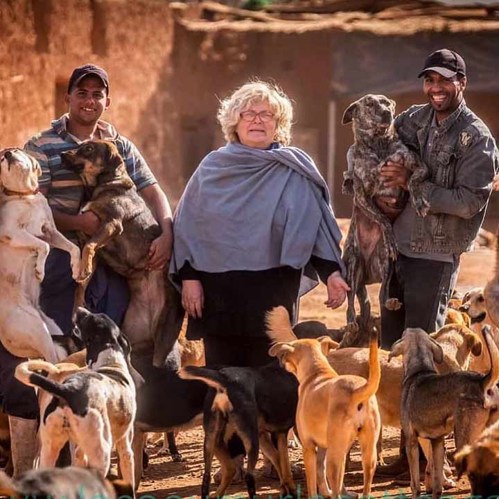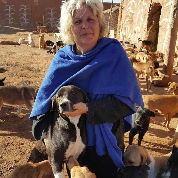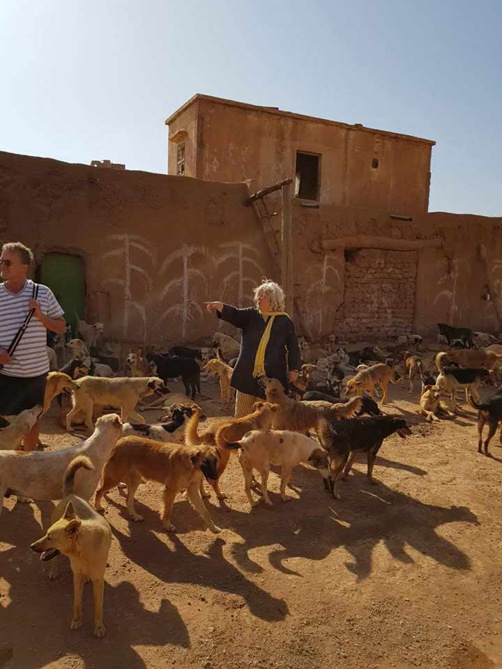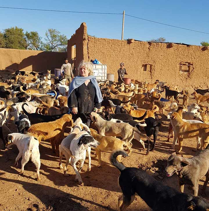 Sept-cent cinquante chiens, et au milieu, une femme. Michèle Augsburger, la Mère Thérèse des chiens errants du Maroc, des "beldis", comme on les appelle ici. Sept-cent cinquante sur les trois millions qui errent à travers le Royaume. Sept-cents cinquante chiens au milieu de nulle part, cloîtrés dans l'enceinte d'une ancienne ferme, pas loin de Taroudant, près du lieu-dit Sebt El-Guerdane. Ce sont les rescapés d'un naufrage qui s'est abattu sur les chiens d'Agadir, dès avril 2018, après le passage d'une délégation de la FIFA.