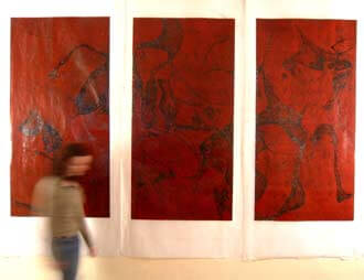 And her work at the Biennial? “The work I exhibited in Naples consisted of a Triptych made out of three large format woodcut prints, 1m by 2.44m each, and printed on translucent paper. In my work, “The Inevitable,” organic forms interact and relate to one another. By shifting his or her glance the viewer discovers endless possibilities of relationships between the forms.”