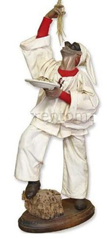 Durant le XIVème et XVIIIème siècle, il est impossible de dissocier les macaroni de Pulcinella, le célèbre masque napolitain dont l’état d’âme est régi par la faim et dont le rêve constant: une énorme assiette de macaroni, n’est jamais complètement assouvie.
