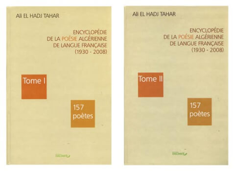 Ali El Hadj Tahar vient de publier aux éditions Dalymen “L’Encyclopédie de la poésie algérienne de langue française, 1930-2008". Celle-ci regroupe, en deux tomes, 158 poètes. Elle est précédée d’une longue introduction. Chaque poète est présenté dans une courte biographie, une bibliographie sommaire et une analyse de son œuvre, puis suivent les poèmes dont le nombre varie selon l’importance de l’auteur. Ces poèmes ou extraits sont tirés de plusieurs recueils, le cas échéant.