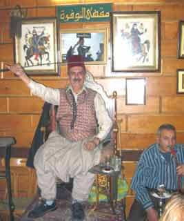 Damas. Arrivé à Bâb Touma (porte Saint-Thomas), tout près du quartier arménien, il faut s’engouffrer dans les ruelles enguirlandées de vigne vierge. Le soir, il y règne une paisible douceur. Près de la porte Est de l’impressionnante et tout aussi sérénissime mosquée omeyyade, se trouve, face au café d’Orient, le café al-Nawfara, paisible et pittoresque. On y vient le soir écouter le dernier hakawâtî de Damas: Rachid al-Hallaaq Abû Shâdî, la soixantaine, homme fort avenant et ayant un sens très raffiné de l’humour. Abû Shâdî arrive au café juste après la prière du soir, il est vêtu en damascène : pantalon bouffant et gilet brodé. Il trône sur un fauteuil adossé au mur tapissé de photos de présidents, d’illustrations de contes populaires (Baybars) et de poésie (‘Antar). Abû Shâdî prend le temps de bavarder avec les auditeurs qui attendent. C’est une foule de touristes européens et arabes et de damascènes. Puis, s’installant sur son fauteuil, il met son tarbouche, sort un livre relié et une épée nue. La salle s’apprêtait à écouter un épisode de la sîra (geste ou roman de chevalerie) de Baybars dont le mausolée est à un jet de pierre. Après la mort de Saladin (son mausolée est tout proche), le sultan mamelouk reprend la lutte contre les croisés qui soutenaient les Mongols, destructeurs entre autres villes de Bagdad. Le cadre historique de la sîra offre à Abû Shâdî des similitudes avec l’actualité au Moyen-Orient qu’il ne se contente pas d’exploiter. Abû Shâdî ne lit pas, il écrit une nouvelle page dans cette geste. L’épisode qu’il invente dit que voyant Beyrouth assiégé par les croisés, Baybars envoie de Damas son armée avec pour mission de soutenir la ville assiégée et surtout de délivrer aux croisés ce message: «Comment des chrétiens peuvent-ils s’attaquer à des pays où musulmans et chrétiens vivent ensemble et partagent le même sort?». Ce souci de «vivre ensemble» a comme expression chez le conteur les formules religieuses œcuméniques qu’il emploie et qui pourraient être celles d’un chrétien ou d’un musulman. Nous sommes dans un pays où islam et christianisme fraternisent.