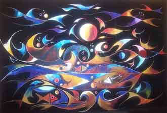 Zarzis, août 2006 - Enveloppés par une chaude nuit d’été, nous buvons un thé à la menthe. Tahar(*) me raconte avec la passion que je lui connais sa peinture. Une musique de fond, berbère ou arabo-andalouse, nous est offerte avec un immense talent par le jeune chanteur et musicien Yazid Bouzembrak. Alors que le ciel est d’un bleu presque noir, ma première question concerne la lumière qui baigne ses toiles.