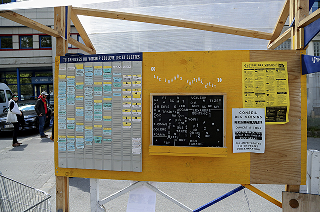 Tableau d'orientation à l'entrée. Crédit photo Les Grands Voisins