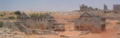 La naissance de la chrétienté participe aussi de l’économie de la Syrie du Nord. La construction des églises commence à se répandre dans tout le Massif Calcaire à partir de la seconde moitié du IVème siècle. Dans certains villages, il y en a plusieurs comme à Dar Qita qui en compte trois, ou Al-Bara qui en possède cinq. L’architecture des édifices religieux excelle grâce au talent de deux architectes, Markyanos Kiris et Julianos qui s’exerce à la fin du IVème siècle et au début du Vème. Les monastères se multiplient, isolés ou en lisière de village. Les pratiques extrêmes auxquels se livrent les ascètes drainent les populations locales et exercent une forte attraction sur les puissants. Les moines assument auprès de ces derniers un rôle d’intercesseurs qui joue en faveur des communautés villageoises. Le plus célèbre d’entre eux, Saint Siméon le stylite invente du haut de sa colonne une forme d’ascétisme très spectaculaire, qui attira, de son vivant et longtemps après sa mort, une foule impressionnante de pèlerins auxquels étaient destinée une véritable infrastructure hôtelière. Le Massif Calcaire acquiert ainsi une renomée internationale.