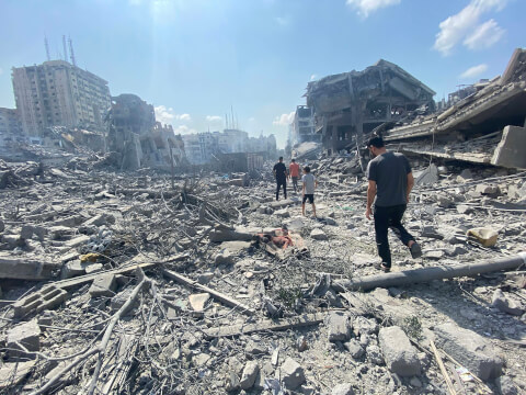 Il faudra des années pour y parvenir, et les puissances occidentales nous combattront à chaque étape du processus, c’est pourquoi nous devons faire preuve de fermeté. D’ores et déjà, nous devons œuvrer pour un cessez-le-feu immédiat et la fin du siège de Gaza, nous opposer au nettoyage ethnique de Gaza, Jérusalem, Cisjordanie (et ailleurs), documenter l’assaut génocidaire à Gaza, contribuer à apporter aux Palestiniens une aide humanitaire massive et les moyens de la reconstruction, prendre soin de nos collègues traumatisés et de leurs familles, et nous battre comme des diables pour que la démarche des bureaux politiques de l’ONU soit basée sur des principes.