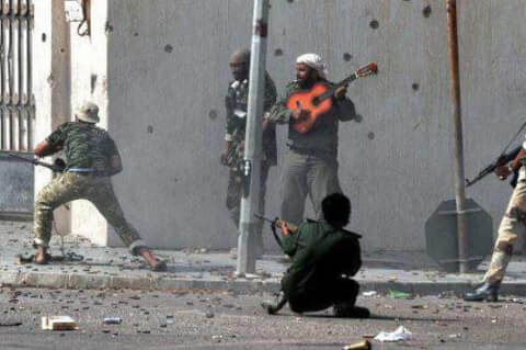 Des instruments occidentaux comme guitares, percussions, pianos et batteries électriques ont été détruits en public en Libye sous l’ère de Kadhafi pour marquer le rejet de tout apport culturel étranger.