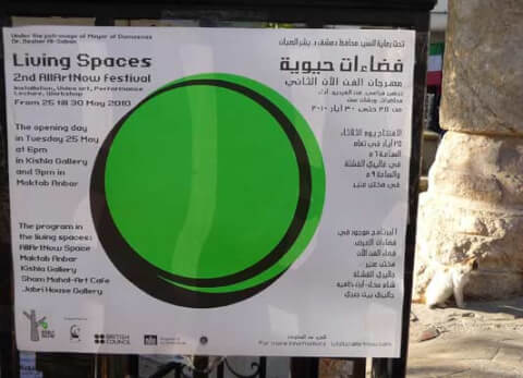 The 2nd AllArtNow Festival took place in Damascus from the 25th to the 30th May 2010. The Festival, consisting of video art screenings, lectures, installations, performances, artistic workshops and encounters was created by a group of artists transported by their energy, their desire to cross views with the entire world, and their belief in the sharing of experiences and imaginations.