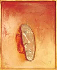 En parcourant la production artistique de Binebine, on est tout le temps devant un paradoxe : l’univers qu’il crée ou décrit, autant dans ses écrits que dans ses tableaux, est terriblement triste, souvent tragique. Pourtant cet univers est plein de vie. Les masques, si abondants dans ses toiles, toujours suspendus dans le vide, semblent figés et livides. Mais ces masques nous parlent mieux que ne peut le faire la parole. Ils se figent pour mieux nous dire les choses, autrement. La présence des masques trahit l’obsession de l’Afrique, comme ce fut le cas pour d’autres peintres, un siècle auparavant. Dans la peinture de Binebine, ce sont surtout les couleurs vives et les contrastes qui insufflent la vie aux toiles. Même les ombres, silhouettes à peine humaines, souvent démembrés, qui sont donc dénués de tout moyen d’expression normale, nous parlent intensément. Elles aussi, semblent vivantes, pas seulement grâce aux couleurs et aux contrastes : elles sont toujours en mouvement, figés dans le mouvement, dans un instant d’éternité et comme contraintes à raconter pour toujours leurs souffrances passées et présentes. Un peu comme ces âmes ou ces esprits tourmentés que notre imagination nous impose parfois, des êtres qui nous hantent constamment parce qu’ils n’arrivent pas à trouver la paix et la sérénité.