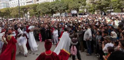 March 25th 2012, professionals, amateurs, and drama students gathered to launch the festivities of the World Theatre Day which will take place on March 27th. They chose to do so in closed theatres as well as in the public space of the Habib Bourguiba Avenue, in order to celebrate the event in a festive and popular mood. The event was granted full authorization by the Interior ministry.