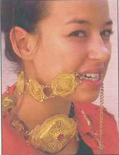 L’affiche du spectacle nous montre la jeune fille mordre une chaîne d’or cliquetante comme un jeune chien qui voudrait se défaire du collier de mauvais métal qui emprisonne son cou. A partir de sa culture - la danse orientale, ses clichés, ses objets- Bouchra puise et forge des représentations avec lesquelles jouer et transgresser.