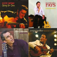 “Les enfants de Django” (du nom de l’une des formations qu’il a inspirées) sont nombreux - et ne cessent de se multiplier d’année en année. Le label Le chant du monde nous offre, pour célébrer cet anniversaire, à la fois des disques de quelques-uns ces héritiers, et tout un festival, à Paris, où pendant 12 nuits on pourra entendre les meilleurs guitaristes manouches du moment. Et voilà déjà quatre albums, pour quatre guitaristes venus d’horizons divers, mais tous animés de la même passion. Ils viennent parfois de familles manouches, comme Angelo Debarre; jouent souvent en famille, avec un frère, un cousin ou un oncle, comme Yorgui Loeffler qui joue en trio avec son frère Gigi Loeffler et son cousin Gino Roman; c’est souvent un oncle qui leur a offert leur premier instrument ou fut leur premier modèle, comme Steeve Laffont qui reçoit sa première guitare à 9 ans, de son oncle; et ils sont le plus souvent autodidactes - à la notable exception de Raphaël Fays, qui apprend la guitare classique dès 12 ans et jouera Albeniz ou Granados en concert, avant de tomber amoureux de l’Espagne, du flamenco, et de la guitare manouche, qu’il joue désormais au médiator.