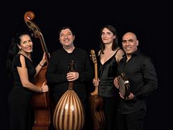 En France, Fawaz Baker a composé pour ce disque un quartet mixte, mêlant deux musiciens arabes - lui-même au ‘oud, ainsi que Samir Homsi aux percussions - et deux musiciennes françaises, Helena Récalde à la contrebasse et Manon Courtin à la guitare - tous chantant également, comme l’exige la tradition arabe…