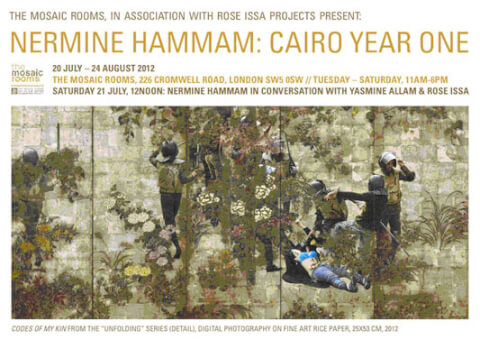 The Mosaic Rooms, in association with Rose Issa Projects in London, is presenting the first solo exhibition by Egyptian artist Nermine Hammam from the 20th July to the 24th August 2012.