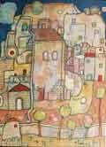 A travers le lacis des ruelles d’une petite ville, les toiles de Ghassan Jadid nous dévoilent tout un enchevêtrement d’histoires secrètes qui se déroulent de jour comme de nuit dans une petite ville côtière. En effet, la ville est le domaine de prédilection du peintre, elle est l’expression spaciale la plus achevée de la complexité des relations humaines. Jadid a choisi de continuer à vivre dans sa ville natale, Tartous, située au bord de la Méditerranée et dont les fondements remontent à l’époque romaine. Par-delà les portes et les murs des maisons, le peintre retrace les souvenirs d’une enfance pleine de créativité et de fantaisie, grâce à un foisonnement de lignes et de formes naïves qui ne sont pas sans nous rappeler les œuvres de MirÓ, Klee ou Alechinsky. Rania Samara