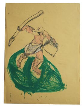 pastello ad olio e pennarello a vernice su carta, 100x70 cm