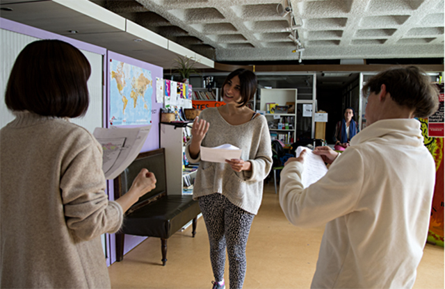 Sirine faisant répéter une femme de l'atelier. (Photo Zahra Agsous)