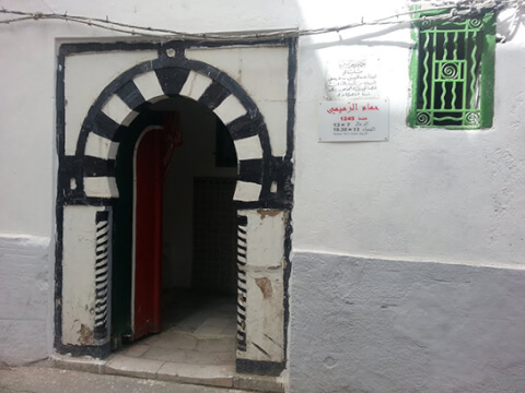 Parto da rue du Pacha, nel cuore della Medina; attraverso Bab Souika, una importante porta della città e poi mi affido ai passanti: «Où est rue Rmimi?» Qualcuno ha la gentilezza di accompagnarmi per tratti di strada. Mi infilo nei vicoli, gatti e botteghe, i suoni e gli odori tipici della Medina: questa è una parte di Tunisi popolare ma sempre affascinante. Sul portale tradizionale e antico dell’hammam mi attende Mohamed Ghariani, 28 anni, studente di finanza, uno degli eredi di questo luogo storico, che, mi racconterà, nonostante non sia più «rentable», proficuo, per lui resta molto prezioso.