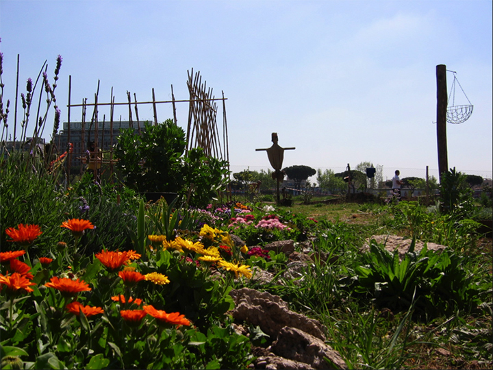 On compteaussi de nombreux potagers urbains voués à l’autoproduction de fruits et légumes, comme celui de Garbatella qui vante,entre tous, la plus grande longévité. Situé sous les bureaux de la Région Latium, ce potagerest né de l’action du quartiercontre la construction d’un centre commercial sur une aire destinée à un jardin public. Sur 25 parcelles d’environ 40 mètres carrés chacune, aujourd’hui 200 personnes cultivent « rapports humains, légumes, fruits, arbres, fleurs, olive et herbes aromatiques.»
