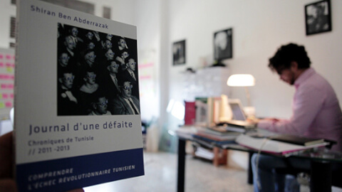 La culture, il s’y plonge à contre-courant depuis qu’il a décidé d’auto-éditer son deuxième livre, “Journal d’une défaite”, un recueil de chroniques écrites entre 2011 et 2013. Un investissement difficile, quand on sait qu’une étude montre, en 2015, que 80% des Tunisiens ne lisent pas.