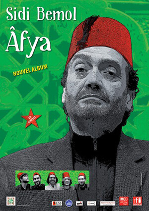 Âfya est le 9ème album de Sidi Bemol. Oui… Sidi Bemol… tout simplement, mettant de côté le titre honorifique de «Cheikh». Toujours humble et charismatique, Sidi Bemol, qui a maintenant des cheveux gris, n’a pas perdu son ironie corrosive, son esprit bouillonnant, ni son oeil pétillant, mais il a choisi d’intituler son nouvel album Âfya, qui en algérien signifie sérénité, paix, élévation, chaleur, lumière … Paix est mon idéologie ; Claires sont mes intentions… (Âfya 1) Sidi Bemol a toujours eu cette particularité de savoir naviguer entre tradition et contemporanéité, c’est ce qui fait sa richesse, c’est ce qui enchante son public fidèle. Musique d’aujourd’hui, forcément de par ses nouvelles compositions (Essala, Nekkni …), Sidi Bemol ne cessant de créer, d’écrire, de composer, d’observer le monde qui l’entoure. Mais aussi de par le choix des musiciens qui l’accompagnent, une jeune génération montante : Damien Fleau, Clement Janinet, Benoit Medrykowski, Maxime Fleau et Jean Rollet-Gérard, ayant quelques points en commun : être sorti de l’Ecole Didier Lockwood, être frère, ami, voguer sur plusieurs genres musicaux (jazz, world, électro, rock, musiques de films…) et être doté de ce talent et cette fougue qu’ils mettent au service de la musique de Sidi Bemol depuis deux ans. CSB Productions / RFI Talent.