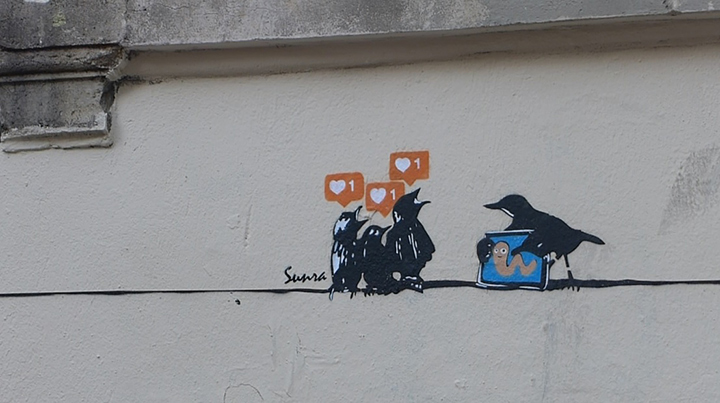 A Montpellier, au détour de certaines rues, on peut se retrouver nez à nez avec des oeuvres de street art marquées de cœurs. Ce sont les œuvres de Sunra, street artist franco-tunisien.