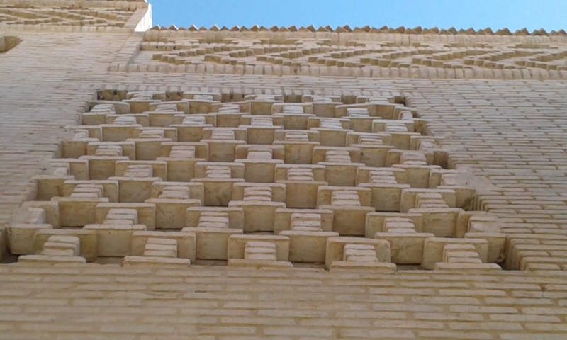 Photo de Hédia Tritar Lesage, accompagée de cette jolie description: Dentelle murale de Tozeur. Les briques s'entrelacent pour former une trame géométrique et au delà les murs d'une cité harmonieuse .La photographie a été prise en mars 2020, une semaine avant le grand confinement .