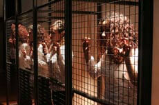 Une certaine version du Liban y est affichée et parodiée. En effet, l’une des comédiennes récite une poésie en vers classiques faisant l’éloge d’un Liban édénique et glorieux : «Watana nnoujoumi ana houna...haddek atadri man ana !!??» les déclamant avec sarcasme et amertume. Le politique est ancré dans les aveux, miroir d’un soi aliéné et d’une identité en péril. Les dernières manifestations rassemblant un million de jeunes, revendiquant la liberté et l’indépendance et incitant à une vision optimiste de l’avenir du Liban, ne déroutent ni le discours des comédiennes, ni celui de la pièce. Bien qu’il soit très probable que l’équipe ait travaillé collectivement à la création du spectacle (un travail d’improvisation conduisant au texte et à la mise en scène), qu'elle ait participé (tous ou du moins la majorité) à cette mouvance de revendication nationale, le doute et la désillusion sont omniprésents. «Donnez-moi dix mille livres libanaises» mendie brusquement et sévèrement une actrice belle, sexy, exaspérée et indignée s’adressant à un spectateur (voyeur), lui tendant la main et le regardant droit dans les yeux. «Le théâtre est un acte de rage» soulignent les metteurs en scène. Cet «ici et maintenant» est un spectacle ouvert, à haute théâtralité. Une voix off qui rappelle régulièrement que nous sommes au théâtre Monnot interrompt le jeu et rythme les différentes séquences du spectacle. Les coulisses et le hors scène ou hors champ, sont ouvertes et totalement dévoilées à l’oeil du spectateur ou celui des caméras. Il n’y a pas de rideau de scène, pas de quatrième mur. Bien au contraire, le jeu frontal des actrices perchées parfois sur des chaises en guise de tréteaux, est ponctué par des adresses directes au public qui est tellement proche de l’aire du jeu qu’il peut sentir la sueur des comédiennes. Celles-ci s’adonnent avec plaisir à un jeu poussé exploitant leurs capacités physiques et morales. Les metteurs en scène, d’une certaine façon, les soumettent à des travaux forcés (ouvrant, fermant et grimpant constamment les grilles coulissantes de leur quatre cellules) et donc à une exploitation physique directe magnifiée par certains gros plans de leur visage transmis sur les postes de télévision. Par ailleurs, une double manipulation indirecte transmettant un choix délibéré d’interviews filmées des comédiennes réalisées pendant les répétitions attestent «soi-disant» et comme dans un tribunal de l’engagement et de la responsabilité des comédiennes «en leur âme et conscience» dans le spectacle. L’effet de montage fait apparaître, en même temps, leurs avis francs et libres sur les écrans et ce qui se déroule sur la scène, leur faisant dire ce qu’elles ne voulaient pas dire. Représentation de la réalité ou d’une représentation de la réalité ? Un théâtre qui représente un monde aliéné et séquestré ou un théâtre qui séquestre son monde (son public) par sa propre image? Dans ce sens «Tahta Riquaba Mouchaddada » est une sorte de jeu de miroirs où le rôle de l’audio-visuel est essentiel. Loin d’être un adjoint artificiel ou un outil superfétatoire, c’est un outil intégrant et intégré au discours intellectuel et artistique du spectacle.