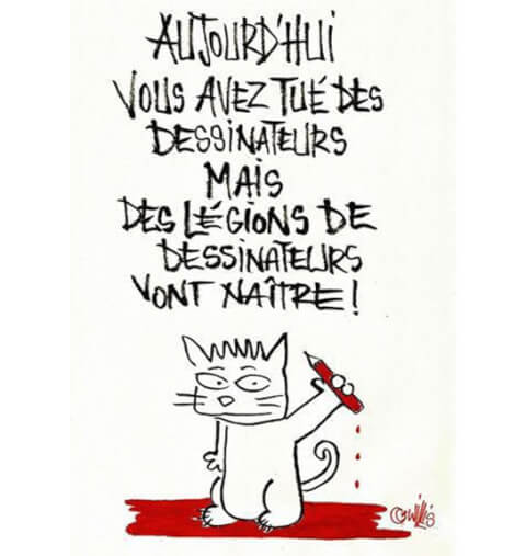 I loro colleghi in tutto il mondo hanno reagito realizzando vignette per denunciare l’accaduto, mostrare la loro solidarietà alla redazione e rinnovare il loro impegno per difendere la libertà di stampa e di espressione. Un “atto di barbarie” ha commentato il disegnatore algerino Dilem in un’intervista a RFI. “Una matita non ha mai ucciso nessuno. Uno scherzo non ha mai fatto male a nessuno”.