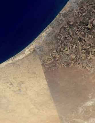 Image par satellite de la frontière entre l’Egypte et Israël dans le désert du Sinaï (Néguev).