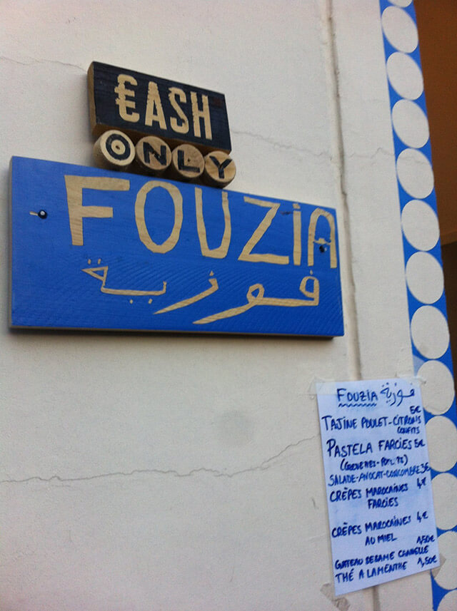 Les Comptoirs proposent des plats – à cinq euros !- préparés et servis par les résidents des centres d’hébergement des Grands Voisins. A notre passage Fouzia proposait pastilla et tajines marocains qu’elle sert au comptoir aux nombreux clients.