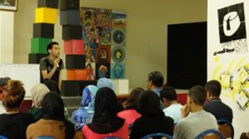 Rachid Meggaro, directeur pédagogique du Lycée Allal Fassi est venu assister à l’échange entre Hamza et les élèves. Pour lui c’est « une excellente initiative » et il est ravi qu’elle se tienne dans son lycée. Il nous confie qu’avant les jeunes voyaient le théâtre uniquement comme un vaudeville ou des pièces qu’ils étaient forcés de lire pour leurs cours. « Ici ils apprennent une autre vision. Ce sont eux qui créent ».