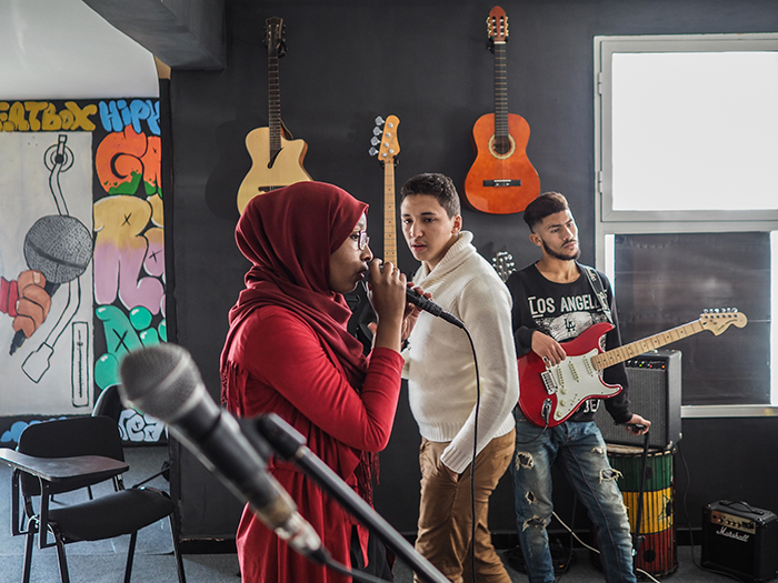 Depuis quelques mois, elle peaufine ses morceaux avec un groupe d'autres jeunes musiciens motivés par la scène. Ils se retrouvent tous les week-ends au centre pour répéter. "J'ai une chance incroyable de pouvoir venir ici. Il faudrait pouvoir ouvrir d'autre lieux de ce type car cela remplit un grand vide".