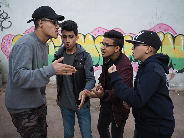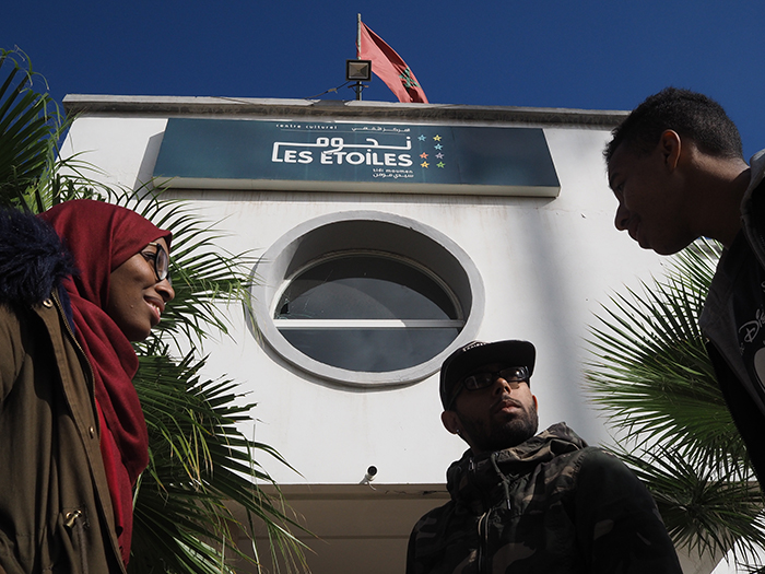 Une petite formation de beatboxer est justement en activité sur la scène de spectacle du centre. Le beatboxer Soufiane, alias Boobo, enregistre des boucles de son qu'il fait écouter à ses élèves en leur proposant des variations. Ses trois acolytes n'ont pas attendu le début du cours pour souffler leurs premiers sons. Soudainement, ils entament une improvisation de bruits soufflés-aspirés. "On peut imaginer reprendre n'importe quel orchestre à partir de ces enregistrements ", s'emballe Soufiane. "Le beatbox m'a tout appris. Grâce à lui, je rencontre des passionnés à travers tout le Maroc et dans le monde entier. À travers ce centre, j'espère créer une communauté marocaine dynamique autour du beatbox. Je vois des opportunités partout."